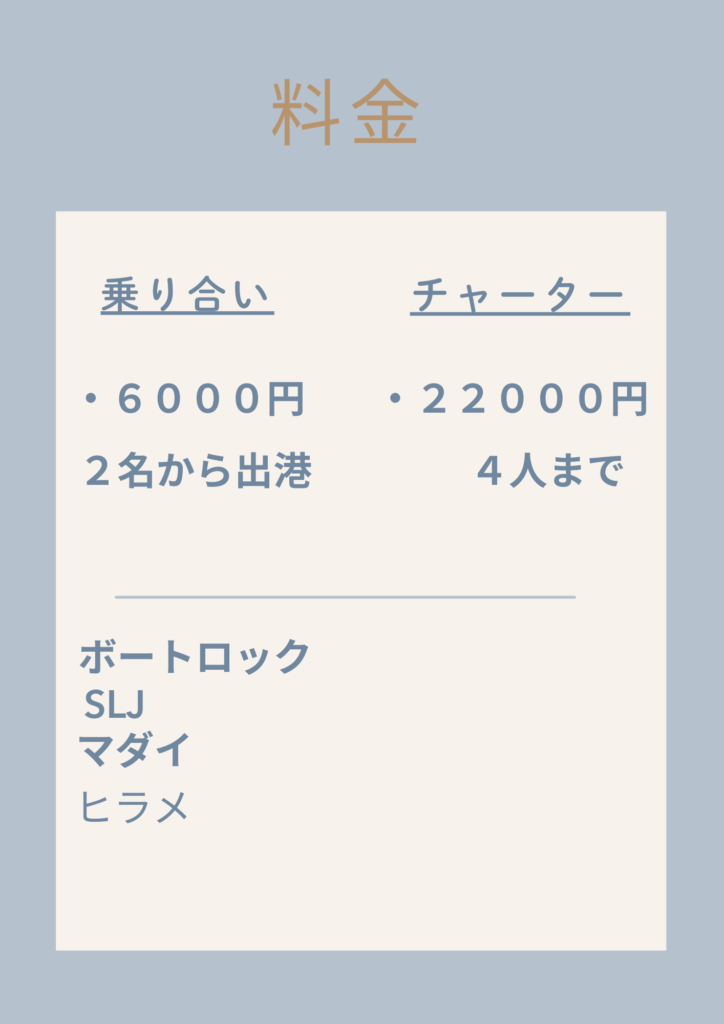 ボートロック、ヒラメ、マダイ、シイラなど季節によって色々な魚を狙えます。